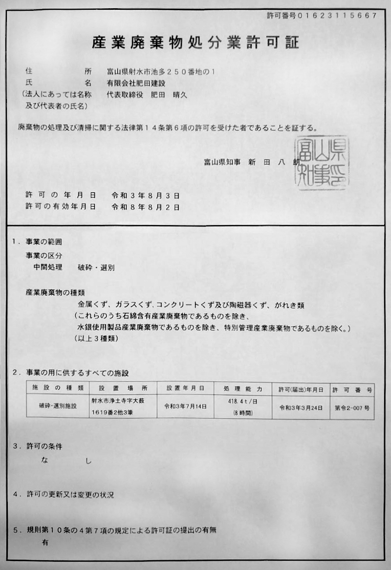 富山県内全域での解体工事・外構・カーポート設置・コンクリート土間・駐車場造成・土木工事・アスベスト除去等は、お気軽に肥田建設へ